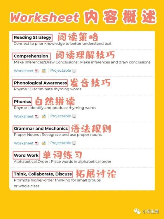 这部分内容很全面,从阅读到词汇、拼读、语法、写作全部囊括,具体包括… 见下图