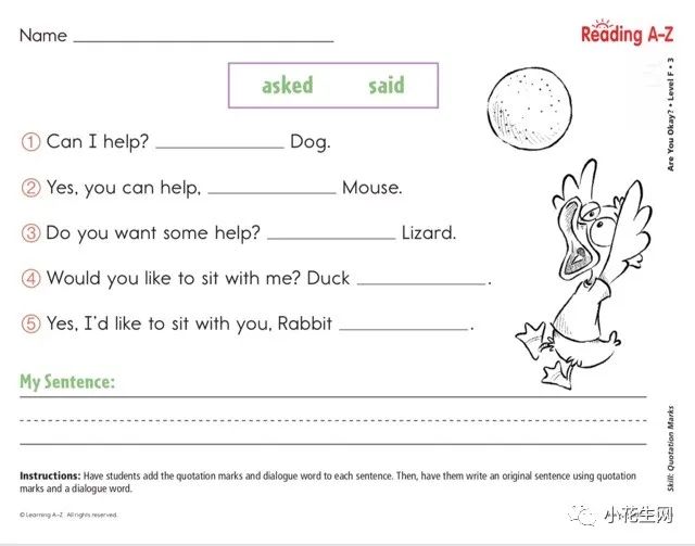 Eric 从 RAZ Level E 级别开始做 Worksheet ,现在已经完成100+份练习,我们发现网站上最常见的 Worksheet 有以下3种:Reading Comprehension 阅读理解