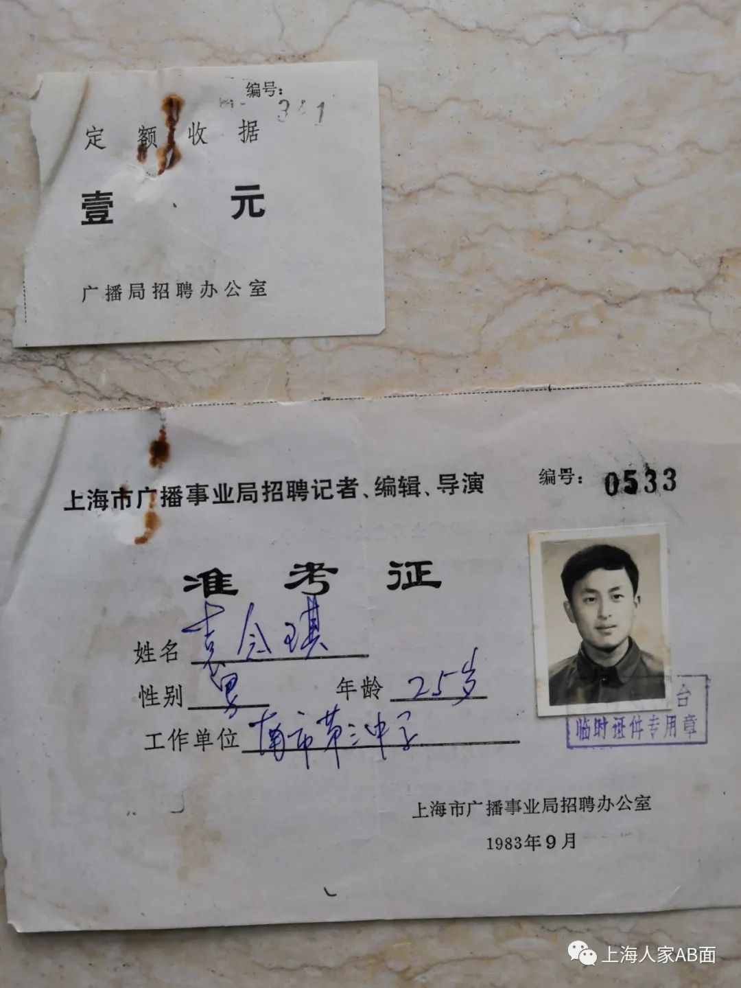 图说:上海市广播电视局记者、编辑、导演招聘考试准考证。袁念琪摄