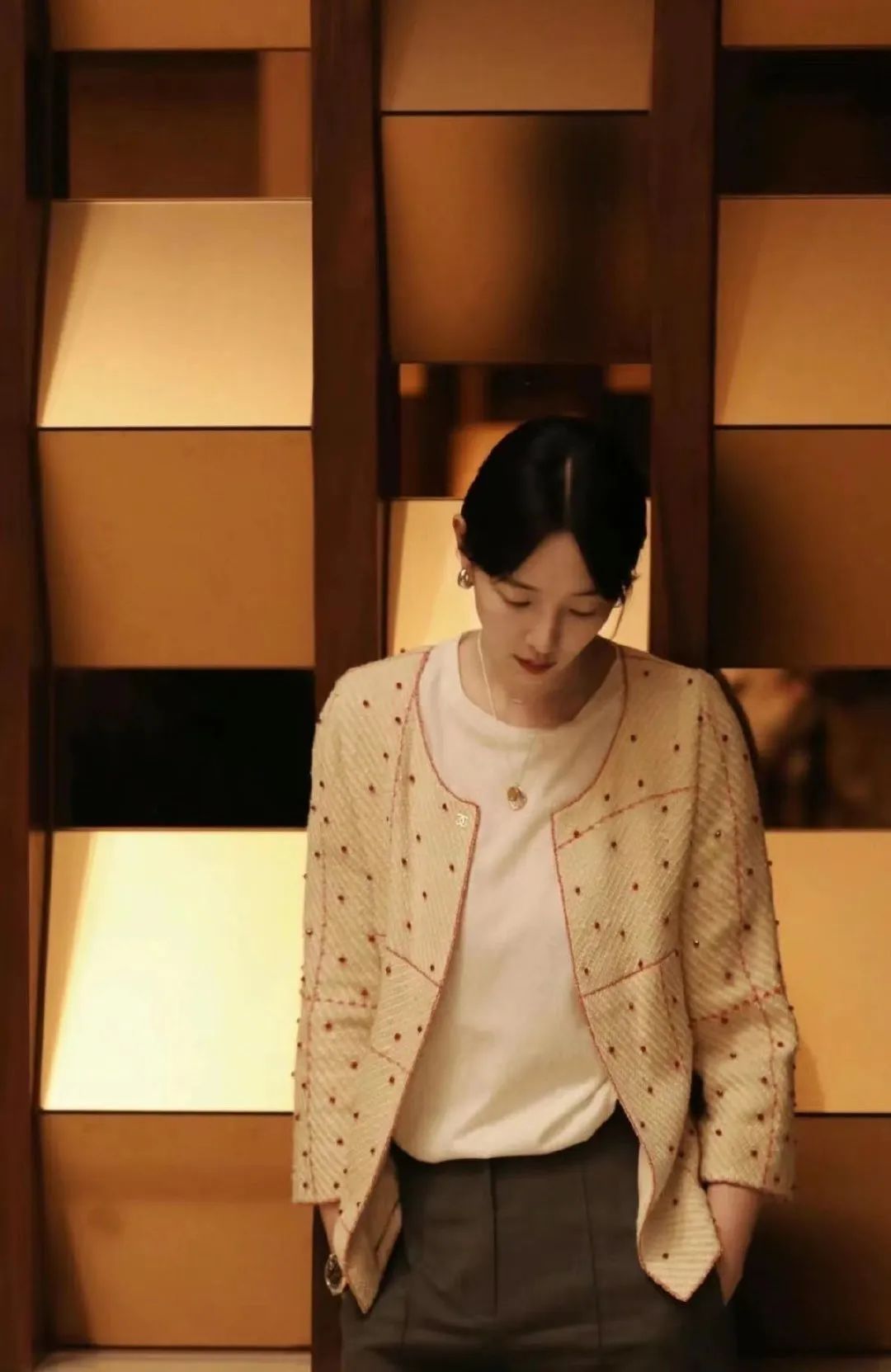 她的穿搭和她剧中的性格一样,注定不是富太太的气质,自有一种豁的出去的锋芒与独特。