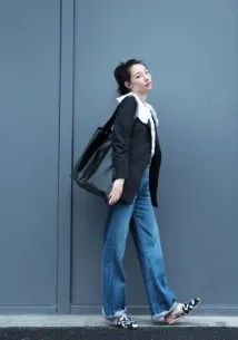 与传统规矩的穿搭不同,简单不挑人的基础款型,加一点休闲单品,用五彩斑斓,富含童趣的配饰点缀,形成了自成一派的好品味。在她的身上,Fendi、Moynat、CELINE 的大牌手袋、Rolex 腕表,可以跟平价好穿的棉裙、帆布鞋搭配。自在舒服、不贴合潮流的穿搭,充满了生活气息。也可以试试条纹 T 恤和牛仔裤,带着几分男孩式的俏皮,穿搭起来时髦又潇洒。
