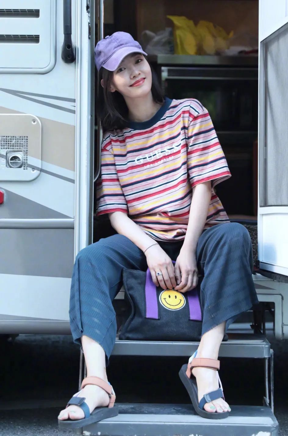 从外套,衬衫,裙子,包包,配饰,每一样,都代表了当下的时髦造型。宅在家里,穿得最多的不是常见的女性蕾丝边睡衣,而是各种条纹T恤混搭,宽松休闲的穿搭配极了她大大咧咧的性格。