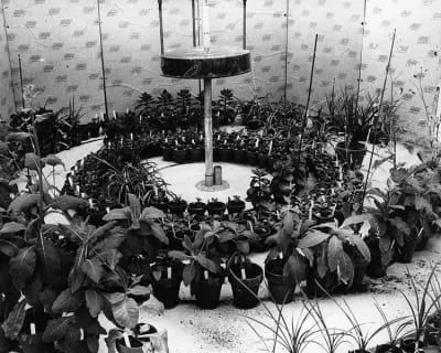 在花园的中心,放有一根含有放射性同位素(通常为钴-60)的磁极,每天辐射约20小时。当研究人员进花园看结果时,他们会先通过遥控将辐射源沉入由铅制成的地下掩体中,然后再穿过高围栏进入植物园中心周围,检查在辐射中心周围的植物。