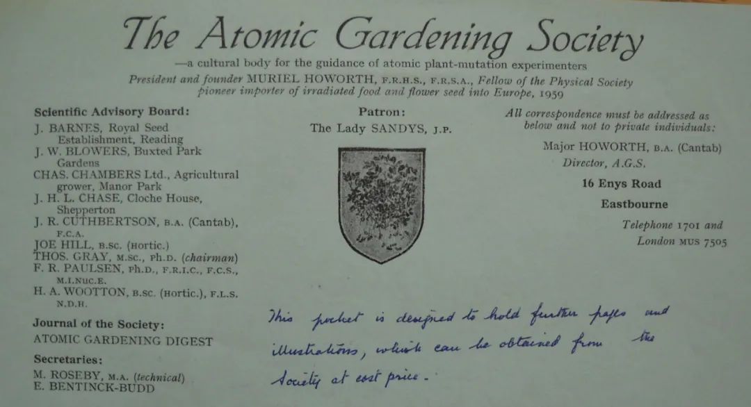 买他家种子的有一个大客户,一位名叫穆里尔 · 霍沃思(Muriel Howorth )的英国园艺师。她在1959年创立了原子园艺协会,想让普通人也参与辐射实验。