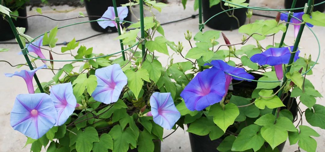比如下面图中左侧的牵牛花就是研究所的辐射育种成果,右侧是正常的牵牛花。