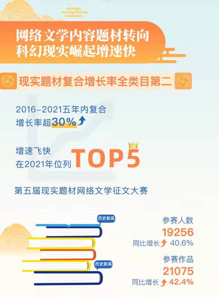 曾经很多人一提起网文,都以科幻、玄幻等虚构作品先入为主,而据《报告》表示,网络文学已经成为普通人记录当代中国的重要载体,过去一年,中国共产党成立100周年、抗击疫情等重大社会议题都深刻影响了网络文学的创作。在国家和平台的号召扶持推动下,已有越来越多的行业一线从业者涌入创作队伍,用网文记录行业发展、时代风貌,侧写中国当代的经济腾飞与科技发展,现实题材正在快速崛起。