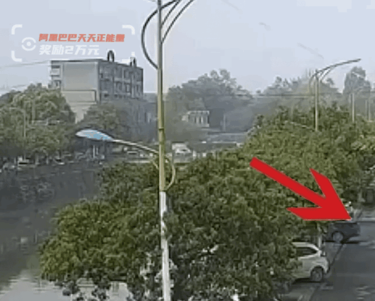 河对面一辆白色小轿车冲进了河里。”
