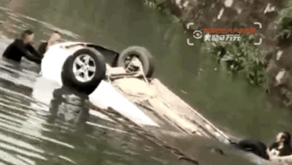 为帮助掉入河水中的三人从车里脱困