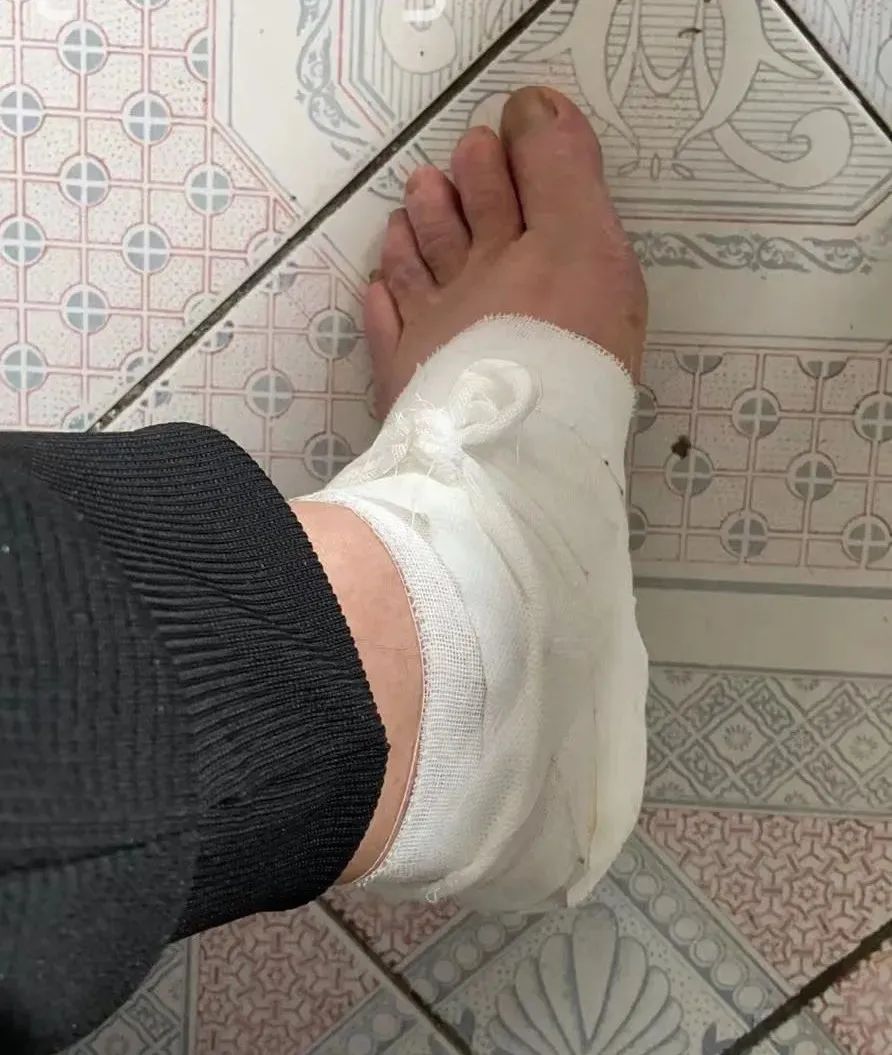 当天在河中救人时,王明红的左脚被石头割伤,