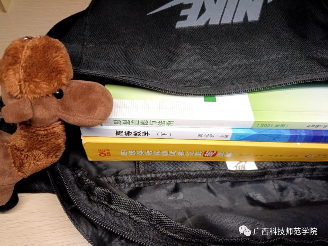 学习人,学习魂,学习就是重中之重。高数、四级、思政……满满一书包的书,还有各种荧光笔和便签纸,每一样都和学习脱不了关系,一看就是图书馆的常客。