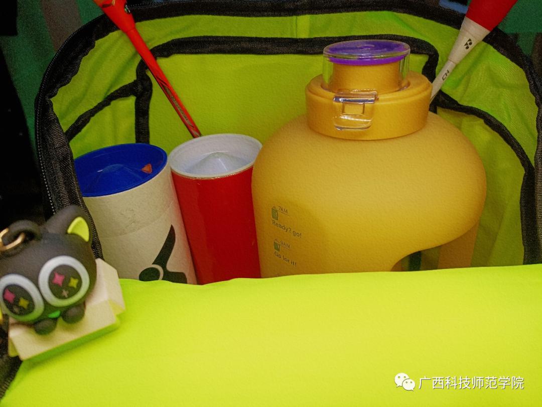 破包而出的球拍杆吸引了小编的目光,拉开拉链,占据了“半壁江山”的羽毛球和球拍很是抢眼,一看就是叱咤球场的老手。