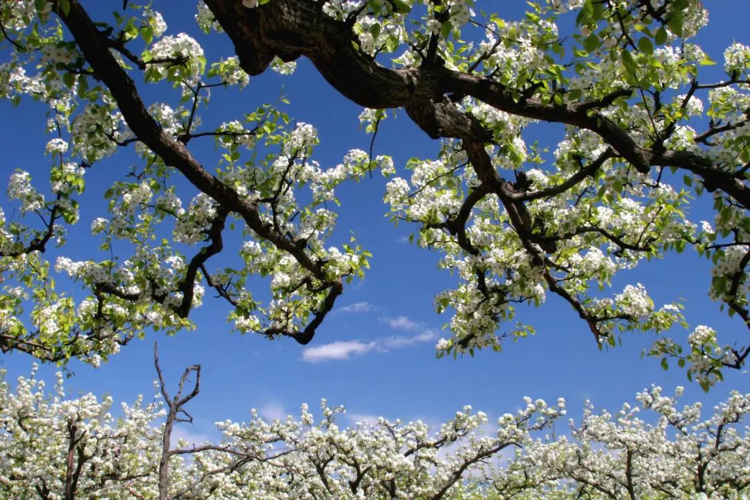 ©李集林秦皇岛有许多赏梨花的好地方。半壁山梨花峪放眼望去,满山的梨花盛开,洁白似雪,铺满整个山坡。半壁山的梨树,冠大花多,且多是百年老树,姿态万千。
