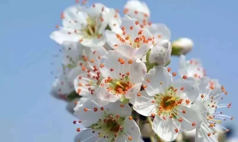 白若雪的李子花,通常3朵并生。秦皇岛市卢龙县段家沟,有“万亩李花一夜开”的奇观,漫山遍野的李花仿佛商量好了似的,一夜之间竞相开放,花白如雪。