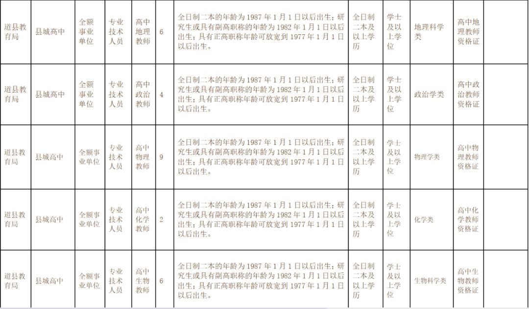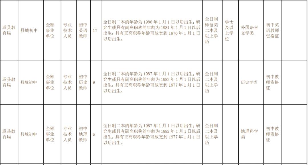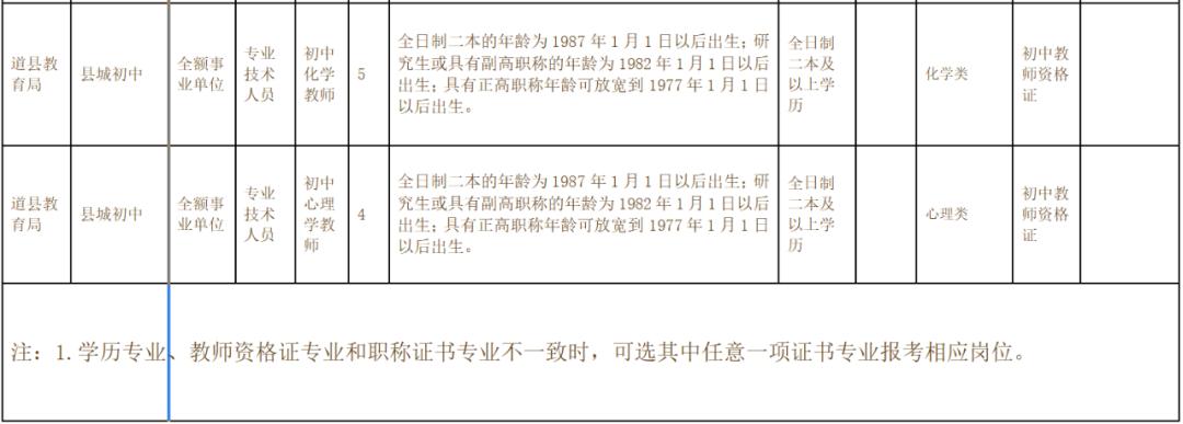 ①县城高中和县城初中语文、数学、英语等急需紧缺专业,可放宽至全日制师范类二本及以上学历,历史、地理、政治、物理、化学、生物和心理学等急需紧缺专业,可放宽至全日制二本及以上学历。学历学位取得时间为2022年8月31日之前。