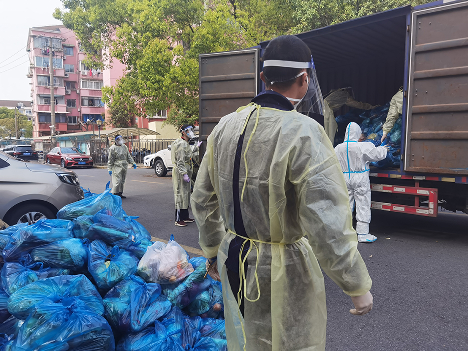 封控一开始的工作就是发菜,4月1日那天,我看到来的很多志愿者是女生,我就跟居委会书记说:“重体力活肯定是我们男生来,我是橄榄球教练。”