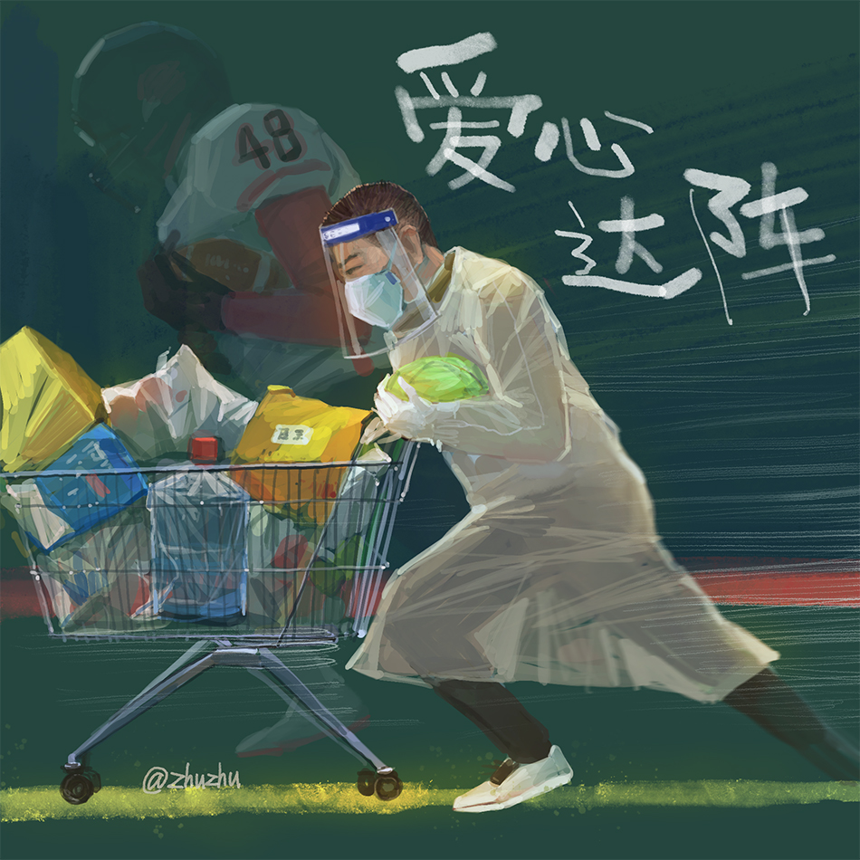 一天下来,这个工作量肯定比我工作时耗体力,但我是教练,感觉还行。有一点令我感动的是,我本来以为老年人的时间多,更允许他们做志愿者。实际上,小区的志愿者多是中青年。发菜时,推车少,有志愿者就开来私家车转运,一车装上50包,菜汁染了车,也不在乎;还有的志愿者动用自己的电瓶车,一次放个三四包菜,或者直接手拎,总之就是各尽其能。
