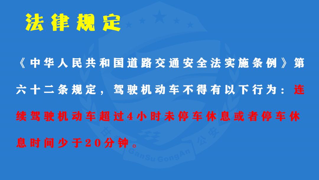 安全是运输企业的生命线,安全是到达目的地最快的路!甘肃公安提醒货运企业,合理制定运输计划,严防高强度运输任务造成驾驶人疲劳驾驶。同时提醒驾驶人朋友,尤其是货运车辆驾驶人朋友,合理安排行车时间,保证自己有充足的休息和睡眠,避开在疲劳驾驶易发时段行车。
