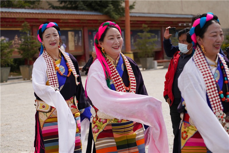配合弦子唱起的歌,歌词对仗规整。“天上繁星众多,我们就像星宿一样集中,山谷里人很多,每个人都像父母一般慈爱。”弦子舞的歌词内容包罗万象,或歌颂山川、河流、湖泊等令人向往的自然,或传达生活之道,或送上美好祝愿……用歌声表达对自然的崇敬,用歌声讴歌美好的生活。