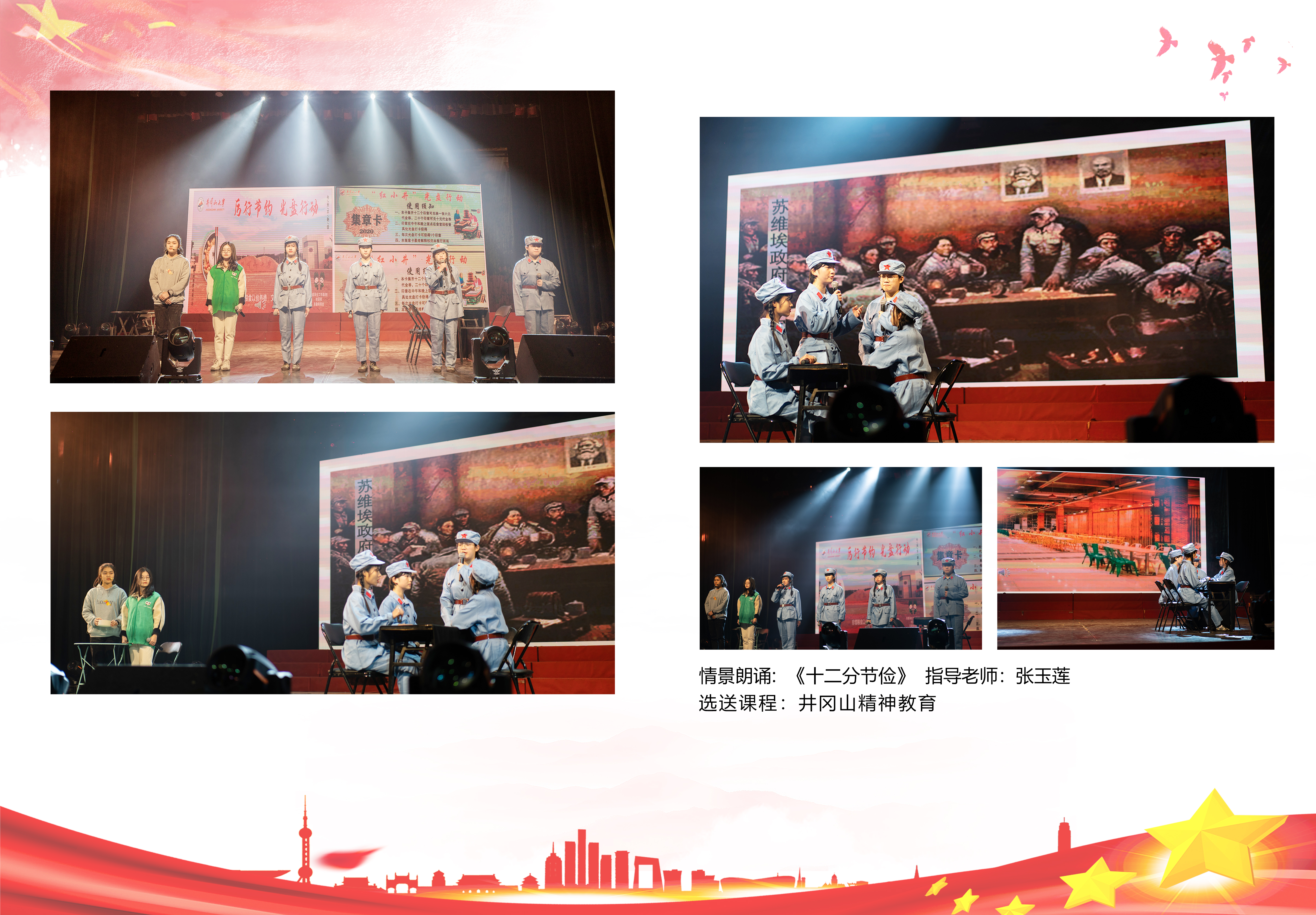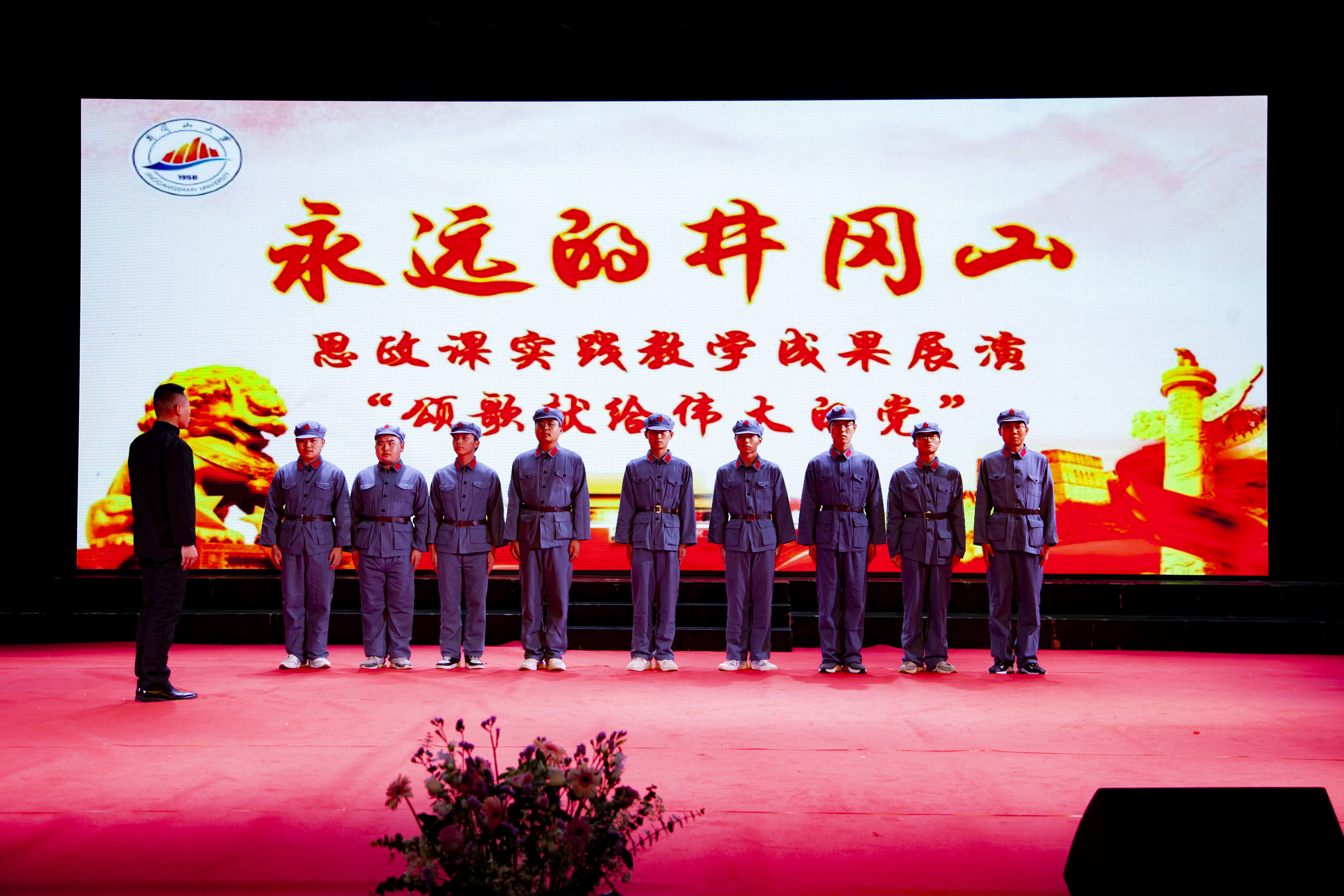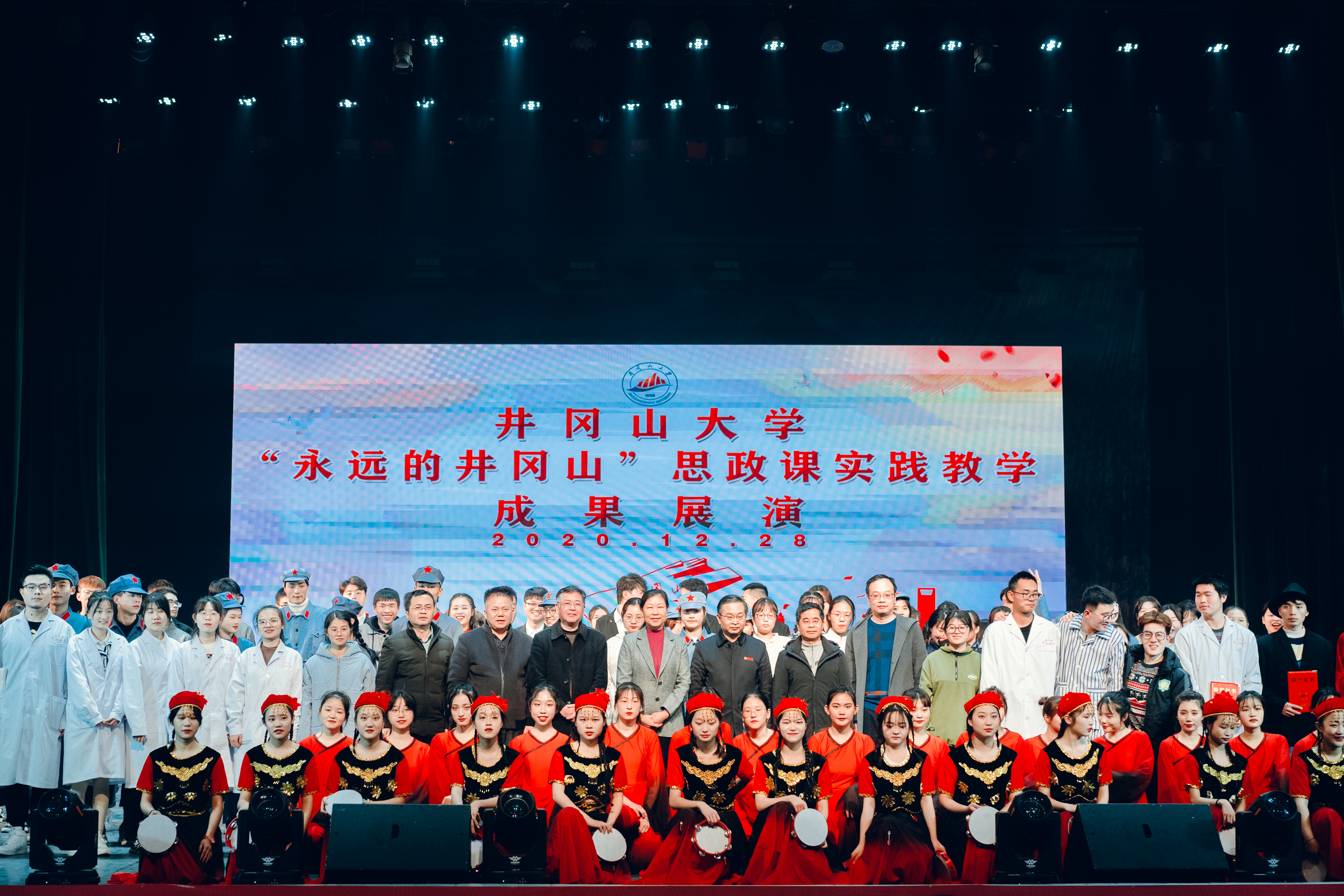近年来,井冈山大学马克思主义学院充分利用井冈山独特的红色资源,以“讲 、诵 、唱 、演 、练 ”为主体方式 ,构建起“五位一体”的实践教学模式,使实践教学课程化、规范化、制度化,学生在思政课教师的指导下,充分发挥出其的主体性和创造性,在亲自参与、亲自动手、用心感悟的过程中,创作出一系列喜闻乐见、适合学生个性特征、具有专业特色的实践教学作品。目前已成功举办三届“永远的井冈山”思政课实践教学展演,节目受到校内外专家的一致好评。