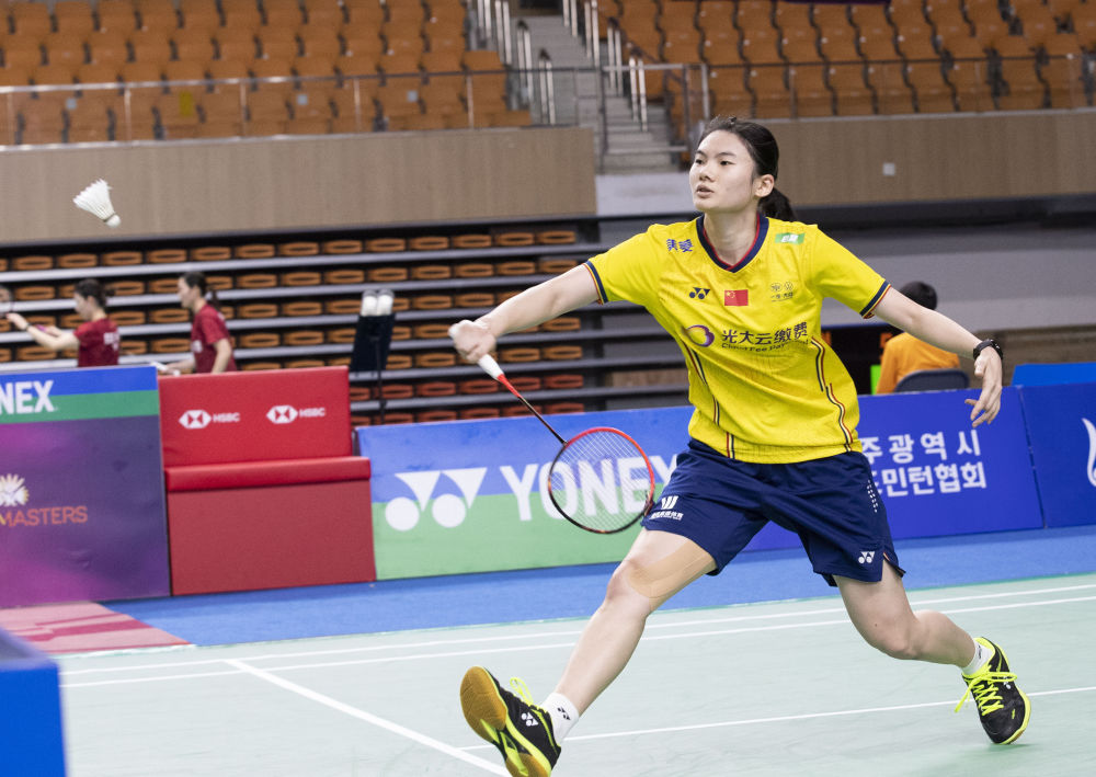 韩悦在韩国羽毛球大师赛比赛中回球。新华社发(李相浩摄)