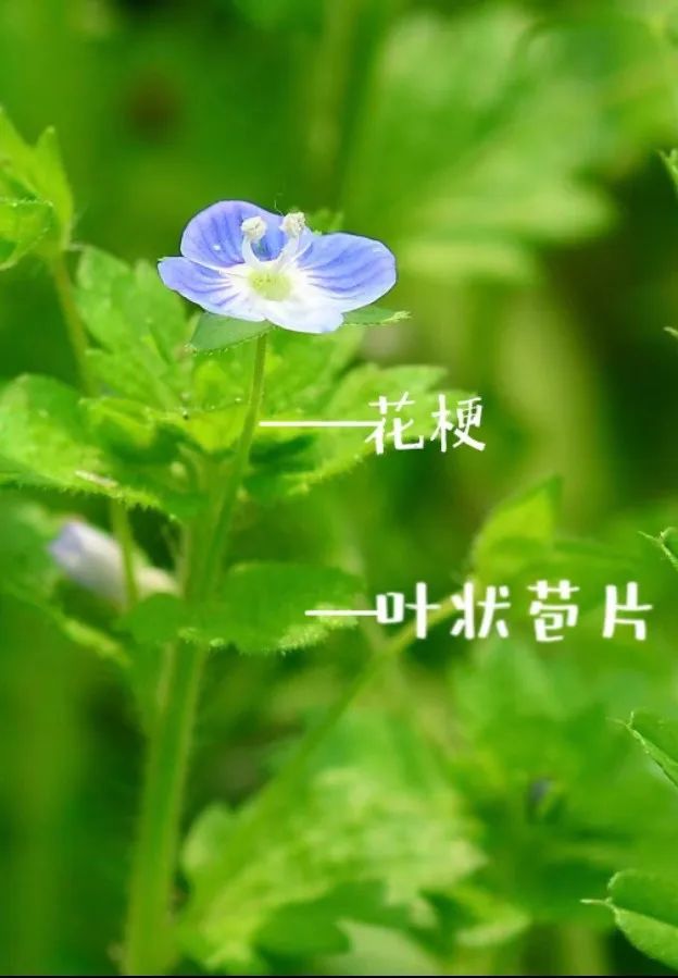 直立婆婆纳的植株虽然阿拉伯婆婆纳花大多蓝色或蓝紫色,婆婆纳花大多是浅紫色,不过也有蓝色,所以辨别两者还可以记住这个诀窍“阿拉婆婆纳的花脖子(花梗)长”,阿拉伯婆婆纳的花梗往往长于下面叶状的苞片,而婆婆纳则短,所有会感觉它的花包在叶里一样。