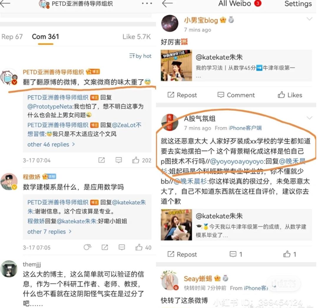 而在微博的这次“学历质疑风波”里,她po出自己的学生证、毕业证和官网截图,朱雯琪以为用同样的方式,就可以消除网友的质疑。不料大家并不理会,甚至还有一位数学大V,@她来做数学题,想要她自证清白。
