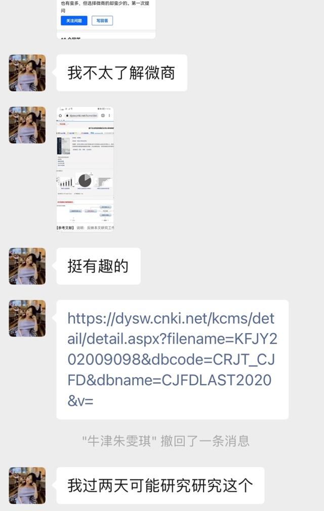 朱雯琪找答案的方式很有意思,她会像做学术一样,先去知网搜和“微商”相关的论文,然后再整理网友们的讨论,运用缜密的逻辑,得出最少三种结论。