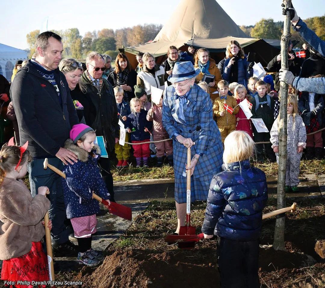 去年10月,女王和250个孩子一起植树。photo: ins@detdanskekongehus