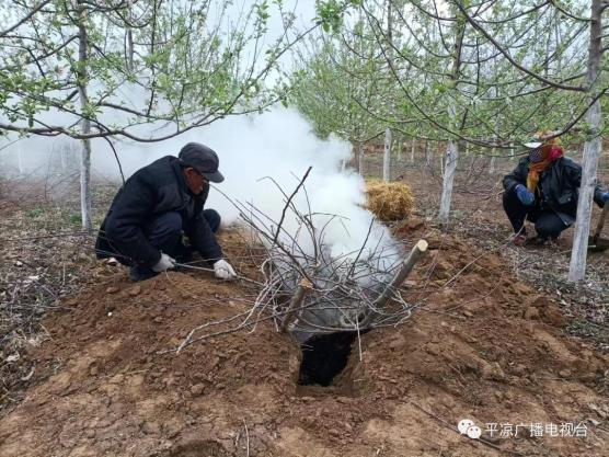 4.熏烟。主要利用大量烟雾阻挡地面热辐射的散发抵御冷空气入侵,提高果园内温度,改善果园小气候,起到防冻作用。霜冻来临之前,在果园上风方向每亩堆设3-4处烟堆,夜间12时至凌晨2时开始燃烟放雾。