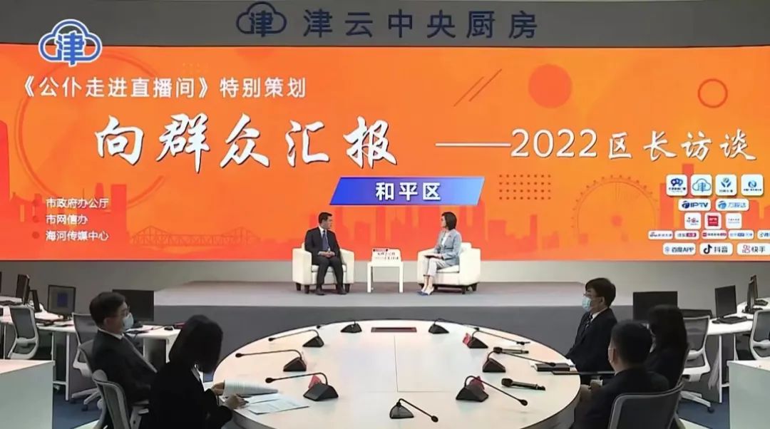 市政府办公厅、市网信办、海河传媒中心合作推出《公仆走进直播间》特别策划“向群众汇报——2022区长访谈”。今天(4月18日),和平区区长郑伟铭和区有关部门负责同志走进节目现场,向群众介绍如何以打造国际消费中心城市作为契机,恢复金街等传统商圈往日的荣耀?