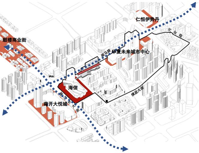 近期,和平区与泰达控股、青岛海信签署三方合作协议,加快推进这一地区包括金耀广场项目在内的城市更新项目,计划投资52.87亿元,引入海信广场及5A级写字楼、增加住宅及配套商业、统筹规划新建小学,进一步增加停车泊位、增设教育资源、改造老旧小区、完善慢行交通、盘活历史文化,构建商旅文居一体的复合化街区。项目预计年内实现开工建设,2025年建成。