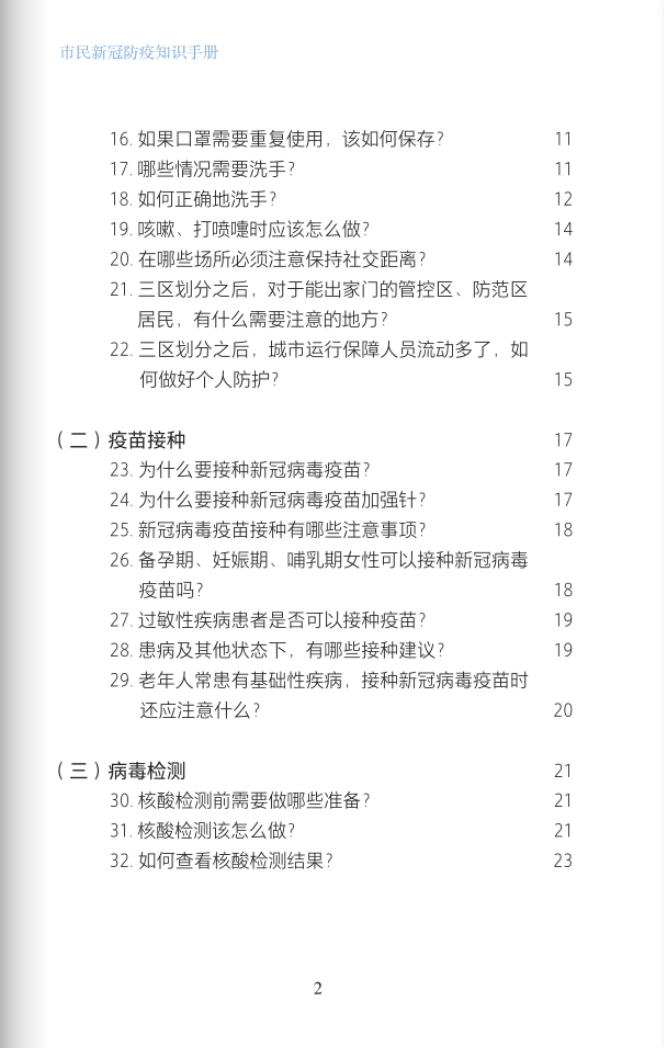 《市民新冠防疫知识手册》