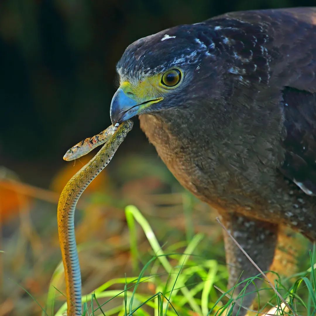 ▲梧桐山,猎食黄斑渔游蛇的蛇雕。李成/摄