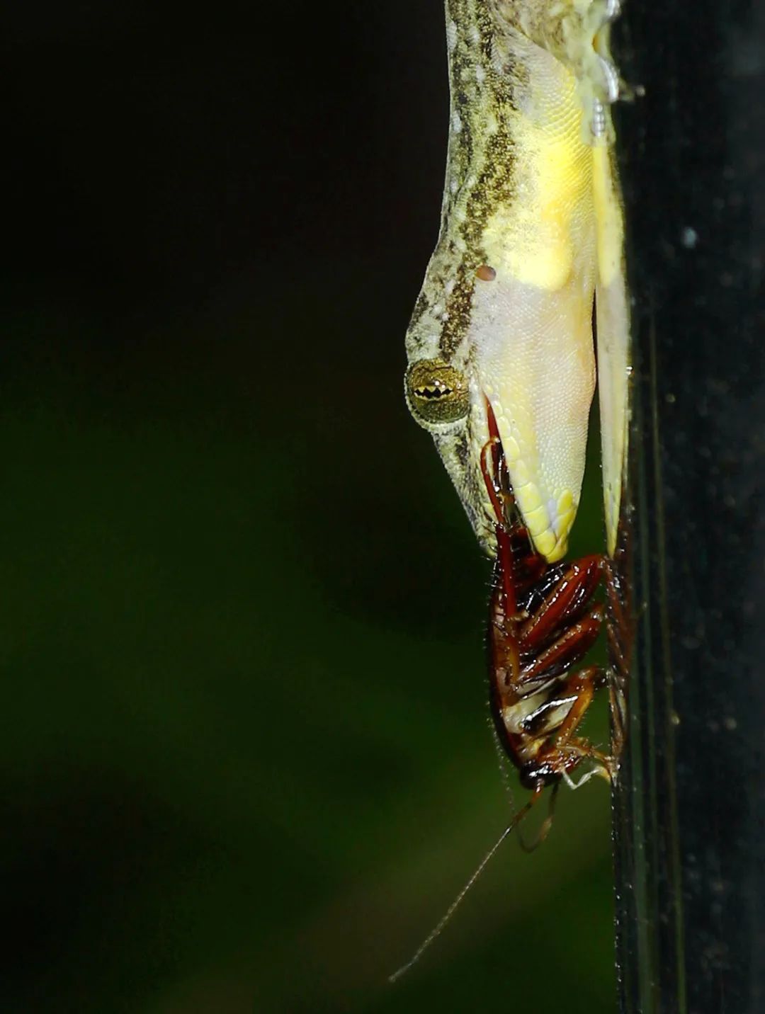 ▲居民小区里,锯尾蜥虎猎食蜚蠊(fěi lián),也就是我们通常说的蟑螂。南兆旭/摄