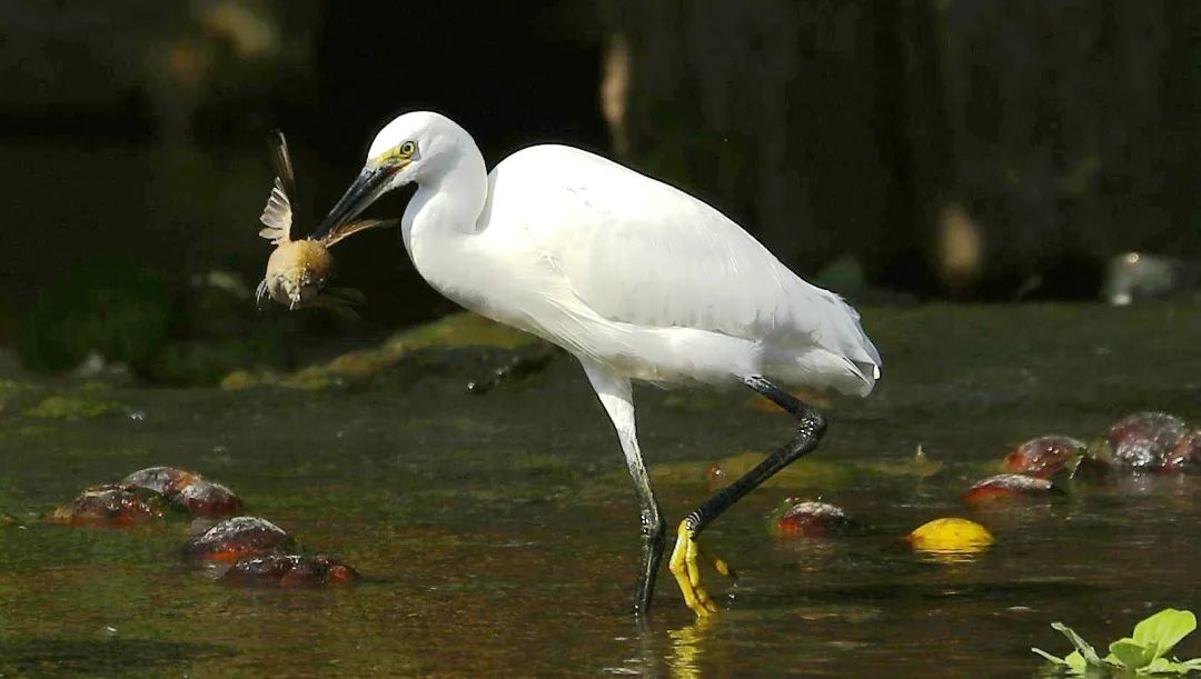 ▲小白鹭的敲山震虎捕食法