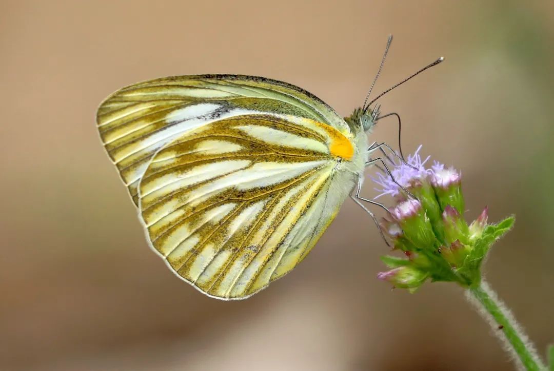 ▲黑脉园粉蝶吸食假臭草的花蜜。一些植物花朵的味道浓烈,吸引昆虫采食,传播花粉 。南兆旭/摄