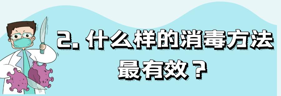 含氯消毒剂。常见的有漂白粉、84消毒液。无论什么样的含氯消毒剂,关键是要看“有效氯的浓度”。通常500~1000mg/L的浓度已经足够。84消毒液标签上写了有效氯浓度为多少,你就根据说明加一定的水进行稀释。含氯消毒剂,一定要现用现配,不能超过24小时。消毒水大量擦拭或者喷洒物体,让它几分钟自然干燥,作用时间通常够了。