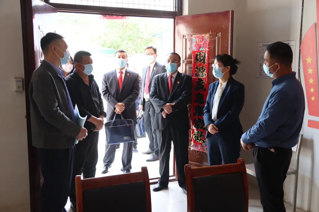 张振芳一行先是前往淮滨法院结对帮扶的徐坡村和楚寨村,与固城乡党委书记任行广和乡党委政府领导就进一步推动乡村振兴建设进行了交流。张振芳实地查看了选派干部的办公和生活场所,亲切询问在村生活起居安排并听取了驻村第一书记马良、刘振里工作汇报。