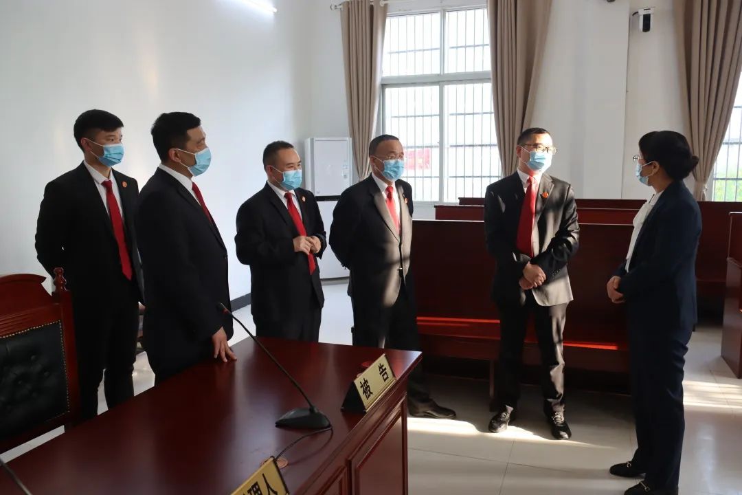之后,张振芳一行先后来前往三空桥人民法庭和防胡人民法庭,与淮滨县副县长、三空桥乡党委书记卢照、防胡镇党委书记张其勇和乡党委政府领导共同商讨助力乡村振兴、建设司法保障、平安建设等工作。张振芳就法庭疫情防控、党建工作、案件审理、信息化建设、法庭布局、基础设施等情况进行实地调研,详细了解了今年以来基层法庭案件收结情况以及干警在审判、日常工作中遇到的困难,认真听取干警的意见与建议。