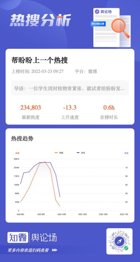 在福建泉州疫情形势严峻背景下,盼盼集团积极回应了一位学生的求助信息收获一波“学生粉”。事后,其在官方账号表示,“或许你们在买零食的时候,不会第一个想到盼盼;或许你们觉得盼盼不够网红,甚至觉得包装有些老土;但每一次有困难的时候,盼盼总是冲在前面,因为盼盼是土生土长的国货民族品牌”,一番话更是惹得网友又心疼又感动,大家把#帮盼盼上一个热搜#的微博话题刷到了热搜榜高位,希望能有更多人关注到有良心的国企品牌。
