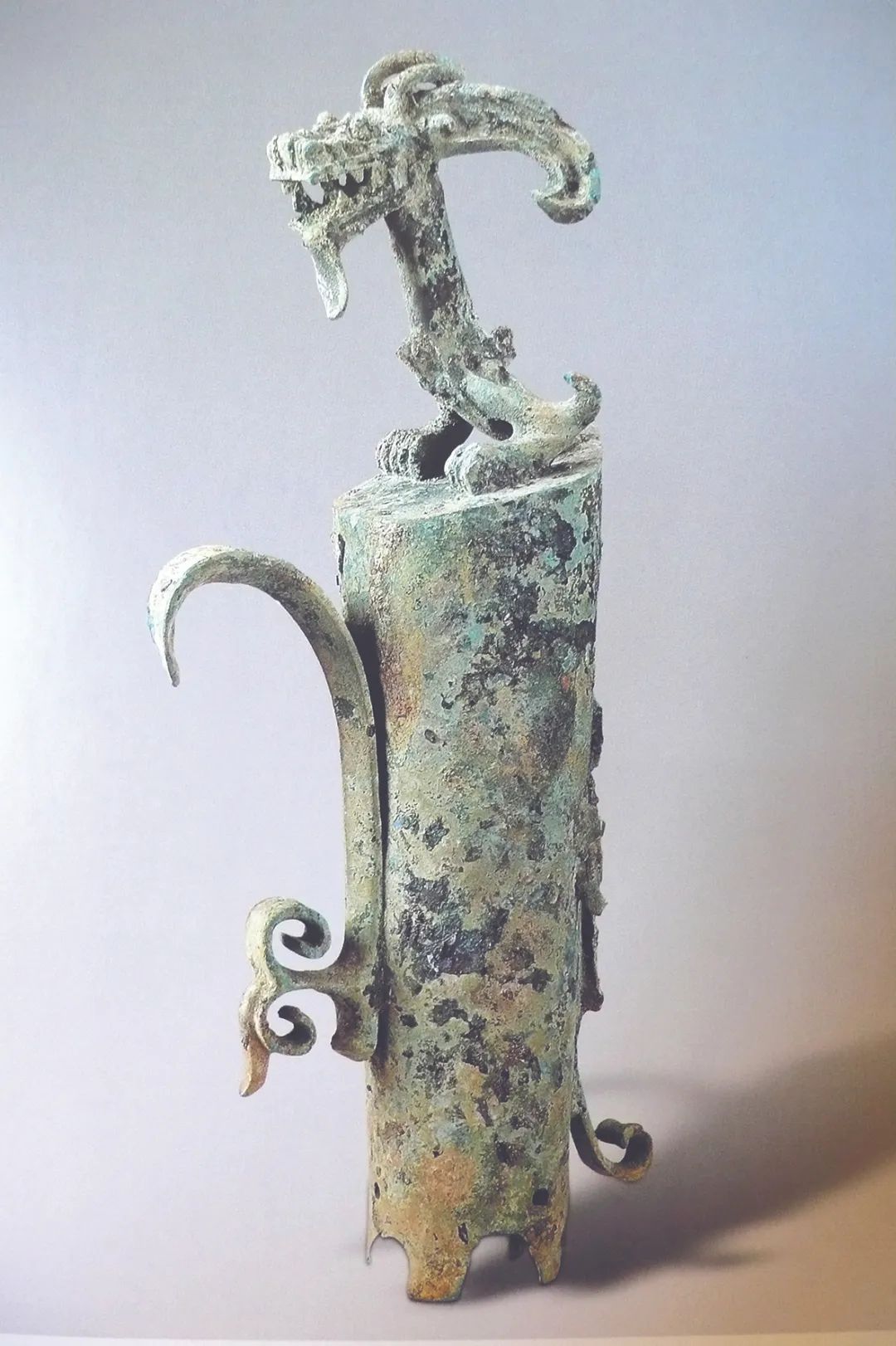 三星堆埋藏坑出土的攀龙铜仗首 北京大学人文社会科学研究院/供图