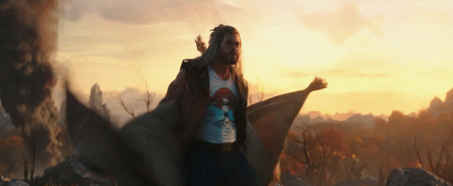 内心平静的托尔归隐田园,封存战斧,坐看云卷云舒。“场面人”塔导审美在线,服化摄影美轮美奂,分镜构图致敬了《复联4》灭霸退休。