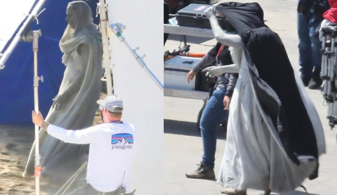 结合泄露的片场照和玩具图,基本可以想象电影中屠神者格尔的角色形象。佝偻光头,灰袍朴素,指尖隐隐约约有黑色魔法印记。