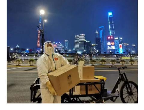 杨元幸是第一次在电三轮上看这座陪自己长大的城市,2辆电三轮,4个人,护着一车又一车的物资去解救社区居民的胃。4月9日,上海市建交委快速集结了由中国铁路上海局华铁旅服公司和中铁二十四局电务公司两套班底共33人组成首批志愿者突击队赶赴黄浦区外滩街道抗疫一线。从企业员工到城市志愿者,他们成了为这座城市输血供氧的“红细胞”。