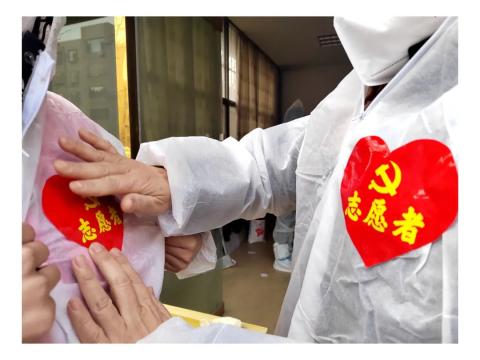 黄向荣的家在上海宝山,妻子4月6日成了小区志愿者。4月9日,他也决定“为上海拼一把”,加入志愿者队伍。