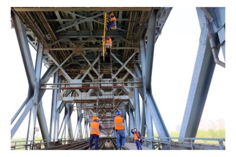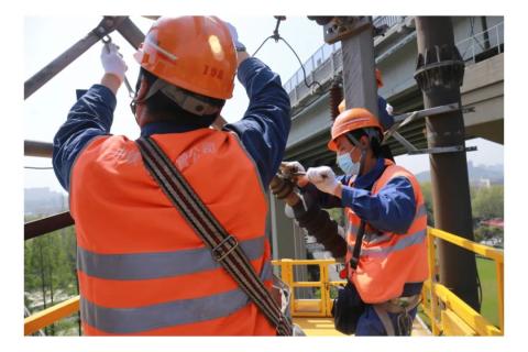 南京长江大桥是长江上第一座由中国自行设计和建造的双层式铁路、公路两用桥梁,是南京市的标志性建筑,被誉为“争气桥”。铁路桥是京沪铁路的咽喉,桥宽14米、全长6772米,连接了津浦铁路与沪宁铁路干线。4月11日,在京沪铁路南京长江大桥上,中铁电气化局运管公司上海维管处南京维管段的接触网工们像往常一样,登上大桥下层的铁路桥,在线路上紧张穿梭,对大桥要害部位的接触网关键设备进行全面“把脉诊疗”。