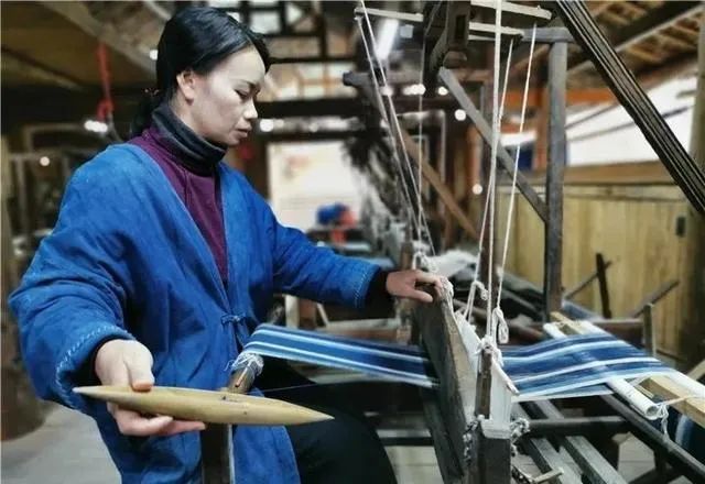 没有地方当生产作坊,就用废弃的猪圈搭个棚子;没有足够量的织布机,就翻山越岭这村那村地找;没有乡亲看好这件事,会手艺的妇女们更是半信半疑,杨成兰就自己上,从纺线、浆线、排线,到上机织布、染布……花费大量时间去研究各个环节和技巧,琢磨其中繁琐的工艺。