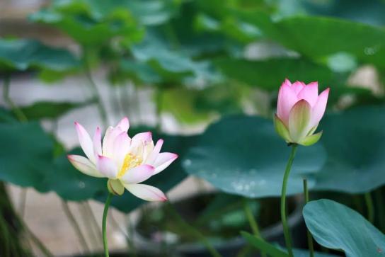 夏天,还总是与荷塘、荷叶、荷花联系在一起。汉乐府中有一首《江南》诗,用白描手法写尽莲中鱼戏:“江南可采莲,莲叶何田田,鱼戏莲叶间。鱼戏莲叶东,鱼戏莲叶西,鱼戏莲叶南,鱼戏莲叶北。”每每读到这样琅琅上口的句子,我立刻想起童年时二三伙伴顶了荷叶开心回家的情景。到了苦夏,见街头偶有挑卖活索粉的担子从身边经过,我都会眼前一亮。新摘的荷叶碧绿圆润,纹理清晰,上面有层蜡质,散发出荷叶特有的清香,荷叶下的索粉白净整齐,米香中掺着荷香,下绿上白,十分诱人,吃时加酱油、香醋、蒜泥、香菜、辣椒,再淋上点香油,那绝对是开胃解馋的佳品。如果去到乡下,或可见到乡间妇女挽起袖子取米浸泡,在细竹丝篮里就着哗哗的溪水、泉水淘洗,将米中酸泡气冲走,再用石磨磨成浆,压制成形,或新鲜出售或晒干品尝。不过现在磨制工具基本用机器替代,不完全依靠手工,省了不少体力。