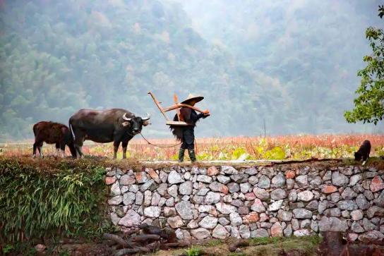 农耕社会的核心是土地,一切物质来自这里,包括为人们提供食物和日常需要,这造就了农村完全不同于城市的思维逻辑。在一眼望不到头的土地上,农民不完全把它当作受苦和劳累,生长过程本是充满希望的过程,获得丰收的等待也许是漫长的,但伴随着汗水,定会迎来丰收的喜悦,农民闻得出稻谷和麦子的芳香。他们中的一部分人因为社会分工改变命运,成为工匠、商人或小贩,所以再怎么高明的经济学也难洞彻农耕社会的一切。农民对土地的依恋,和牧人对草原的依恋一样,土地是他们最为重要的生产资料,那里能长出稻麦菽稷五谷杂粮。过去春节农家最喜欢贴“五谷丰登”“六畜兴旺”的门对就源于此,——稻为主粮,牛出死力,耕牛禁止宰杀。牲畜今天仍存在的习惯和仪式使它们凝聚,有些为了适应环境,有些是环境为了适应它们,动物满足了食欲,草木获得生长,双方得益。很多时候人因牲畜受到启发,驯养它们、役使它们的同时,牲畜成了农民的依靠,成了农民的朋友,从中学会要善待一切生命。