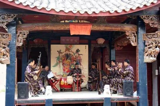 不同的生存环境和生活调子,会创造出不同的艺术样式。宋室南渡定都临安后,随着瓦舍在临安的大量兴起,在北方盛行的讲唱艺术开始在南方风行起来。于是,浦江也出现了讲唱艺术表演团体坐唱班,也叫什锦班,时间长达数百年。到明朝中叶,乱弹由坐唱搬上舞台,作为婺剧的一个分支,浦江乱弹走上了一条属于自己的坚实路子。以笛子、唢呐等吹奏乐器为主,弦乐只起辅助作用的浦江乱弹,声腔激昂、高亢、悲壮和沉郁,响遏行云,极具感情色彩,它已经不是简单随意的起兴与咏叹。歌者的胸腔里似乎藏着一股酣畅淋漓的胸臆,胆气、豪气、侠气,一应俱全,喷薄而出。我听过一次,即被它粗犷有力的表演震慑住了,甘心做了它的俘虏。其唱腔与乐器交织的效果,如同黄钟大吕,我必须全身心投入细细咀嚼才能品尝出其中的滋味。在时间的河流中,浦江乱弹的吟唱,丰满了我们的农耕文明。乱弹剧目大多取材于《说唐》《水浒》《三国》《杨家将》等,而且只要“一村有戏,则数村之民若狂,士华服,女靓妆,人罗酒浆,家具鸡黍,下至鬻汤卖饼之徒莫不填衢塞巷”,广受欢迎程度可见一斑,这种情形即使到今天还是非常普遍。可以说,笛子、唢呐一类农耕社会的乐器,与新疆哈萨克宛如蹄音的冬不拉,与蒙古草原低沉呜咽的马头琴一样具有表现力,唱腔与秦腔颇有几分相似,不能不叹为观止。